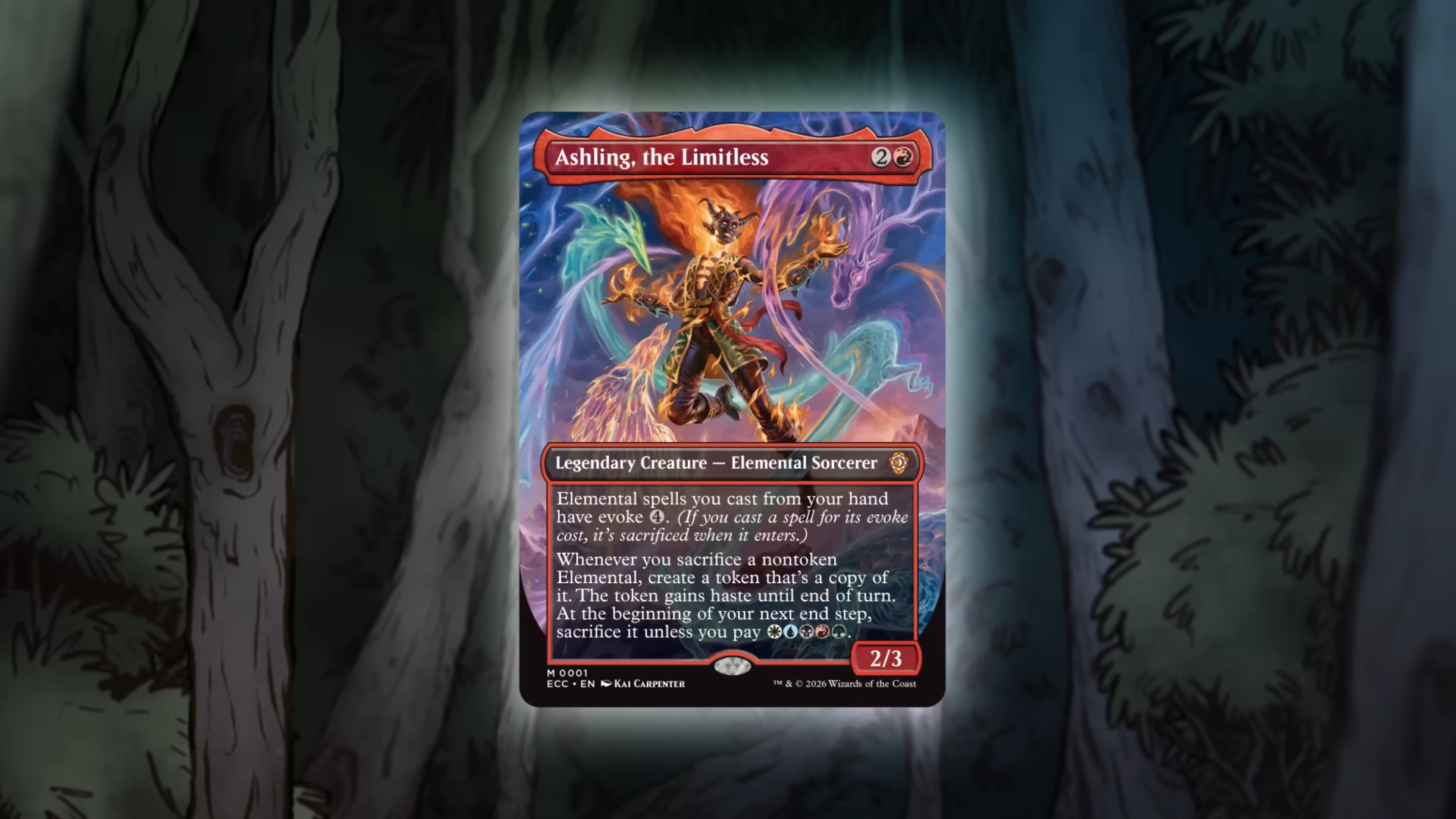 Командир Эшлинг, Безграничная, является мощным дополнением к этой колоде благодаря своей доступной и полезной способности. Всего за четыре маны она удваивает эффекты существ, выходящих на поле боя, позволяя извлечь из них больше пользы, выставлять дорогих существ раньше и избегать обычных ограничений для только что призванных существ. Поскольку большинство существ в этой колоде — Элементали, Эшлинг будет эффективна независимо от того, какие карты вы вытащите.