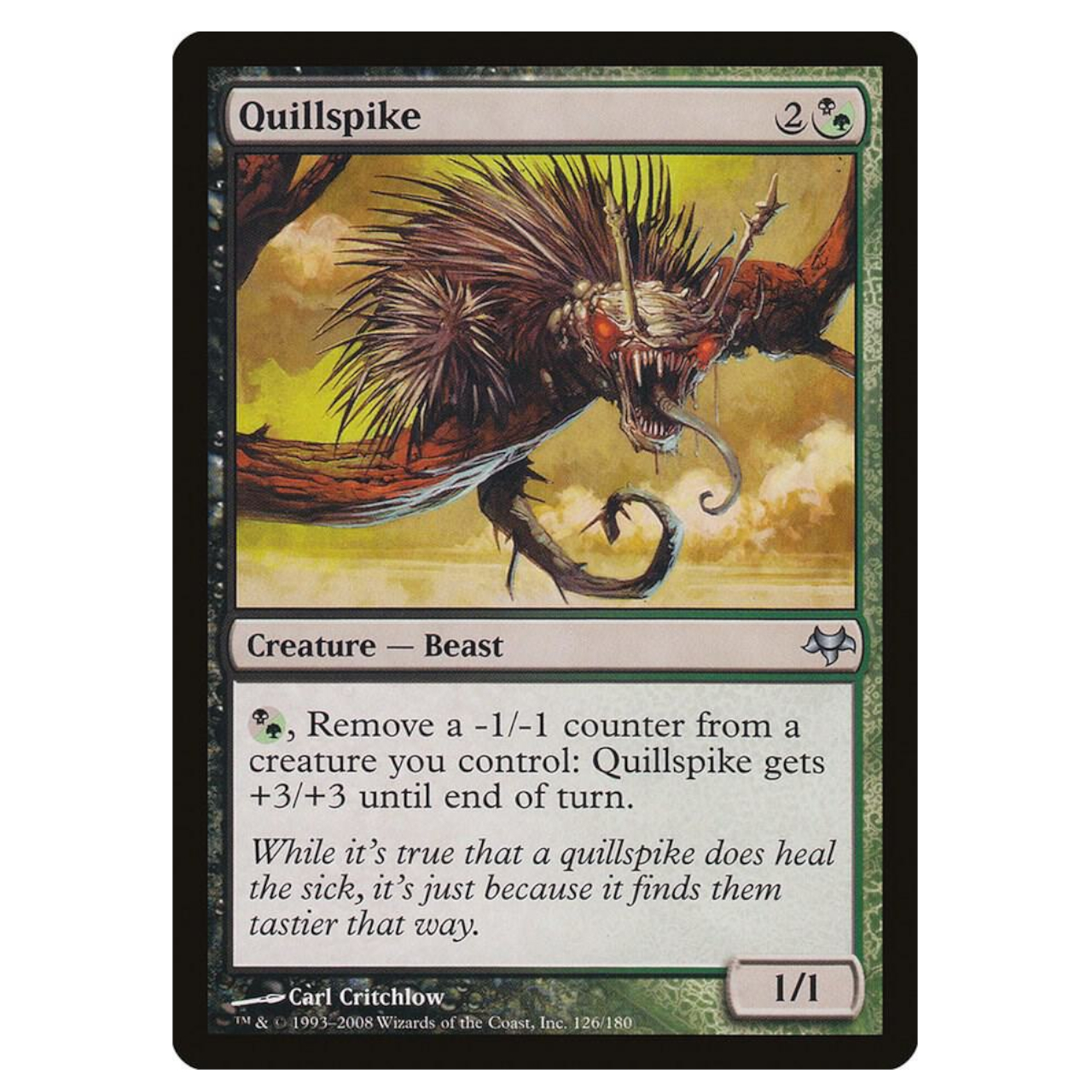 Quillspike, доступный на TCGPlayer, может стать мощным существом, перенося на него счетчики. Он особенно хорошо работает с Devoted Druid, создавая очень сильную комбинацию.