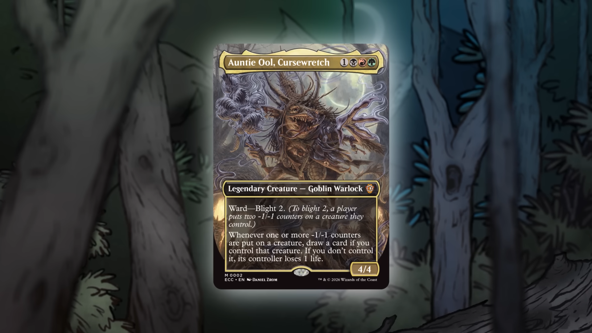 Blight Curse — это готовая колода, в которой представлены Auntie Ool, Cursewretch, и построенная вокруг цветов Чёрного, Зелёного и Красного (Jund). Основная стратегия колоды заключается в использовании счётчиков -1/-1 для усиления ваших существ. Может показаться странным намеренно ослаблять свои силы, но опытные игроки в Чёрную магию знают, что краткосрочные жертвы могут привести к большим выгодам в будущем.